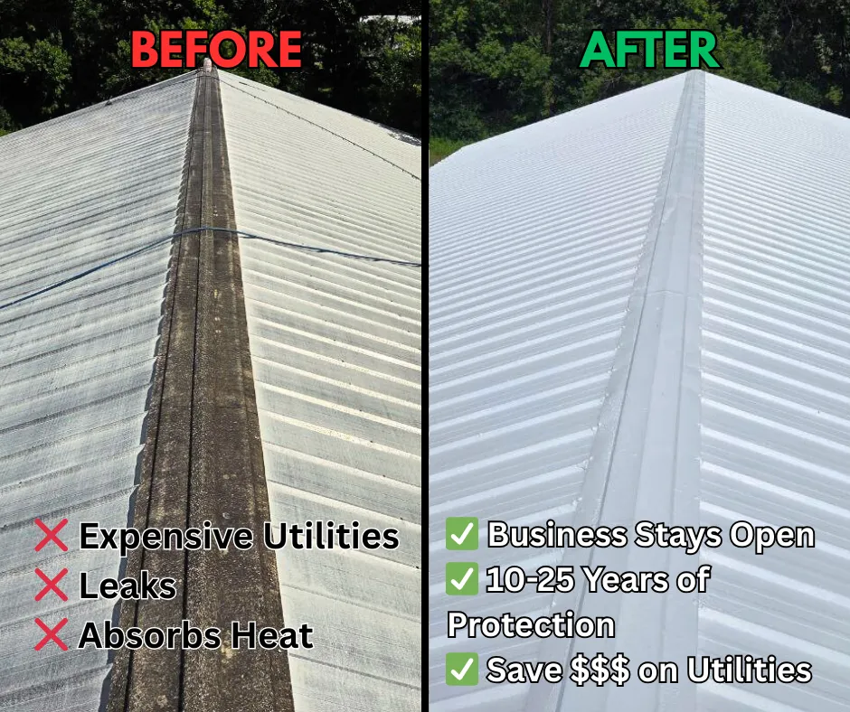 Absolutely. Reflective white coatings can reduce roof surface temperatures by up to 50–70 degrees, which often leads to noticeable HVAC and energy savings.